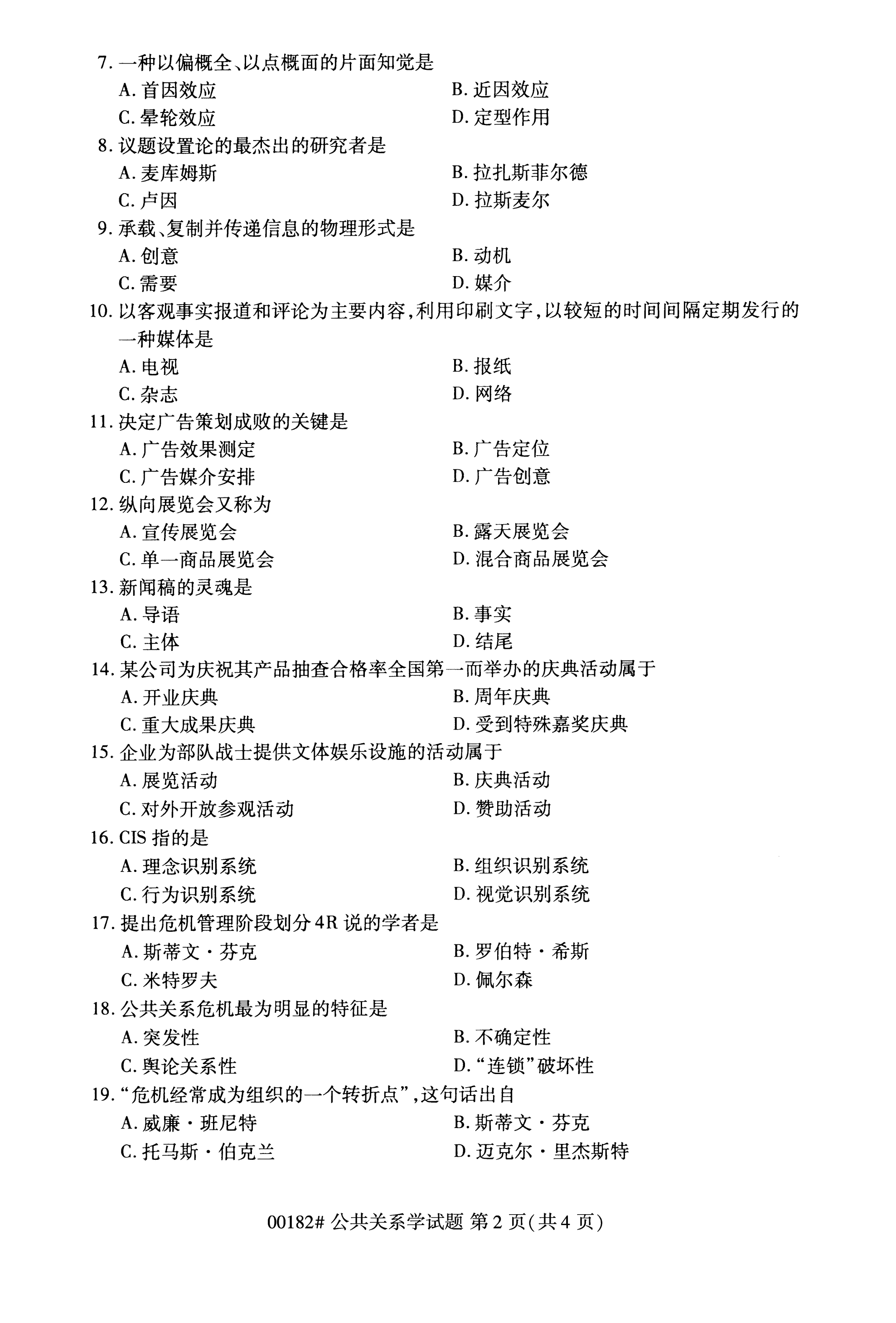福建自考全國(guó)卷公共關(guān)系學(xué)(00182)試題