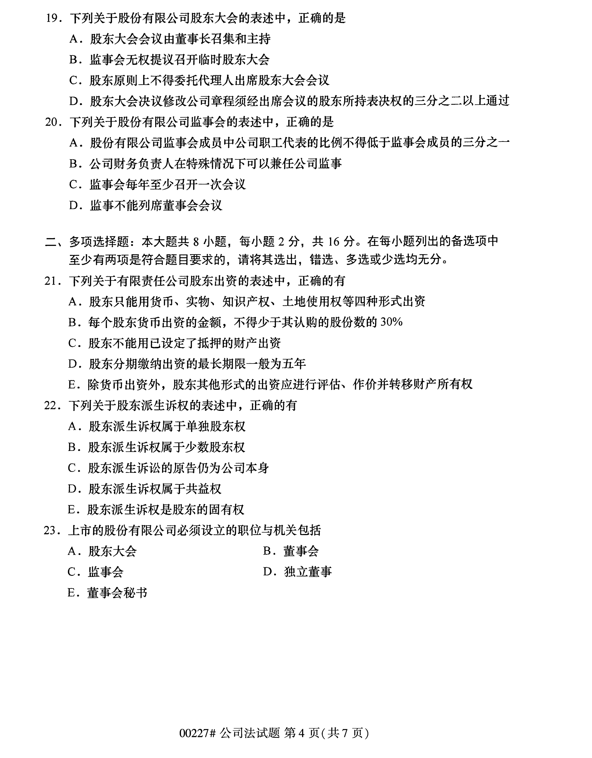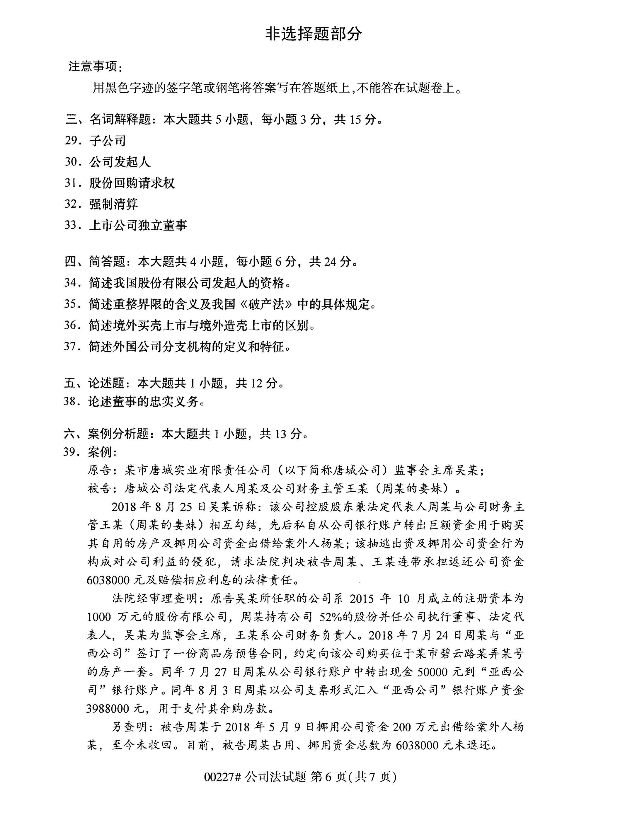 所在位置:福建自考網(wǎng) > 試題題庫(kù) > 自考試題 > 福建自考全國(guó)卷公司法(00227)試題