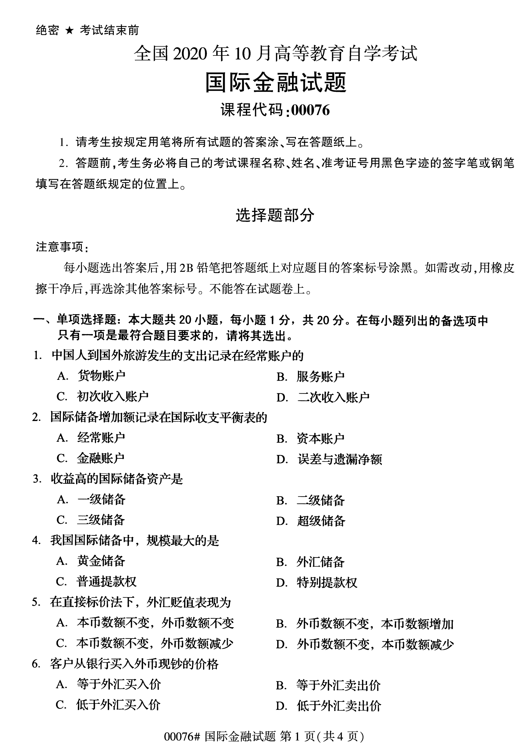 所在位置:福建自考網(wǎng) > 試題題庫 > 自考試題 > 福建自考全國卷國際金融(00076)試題