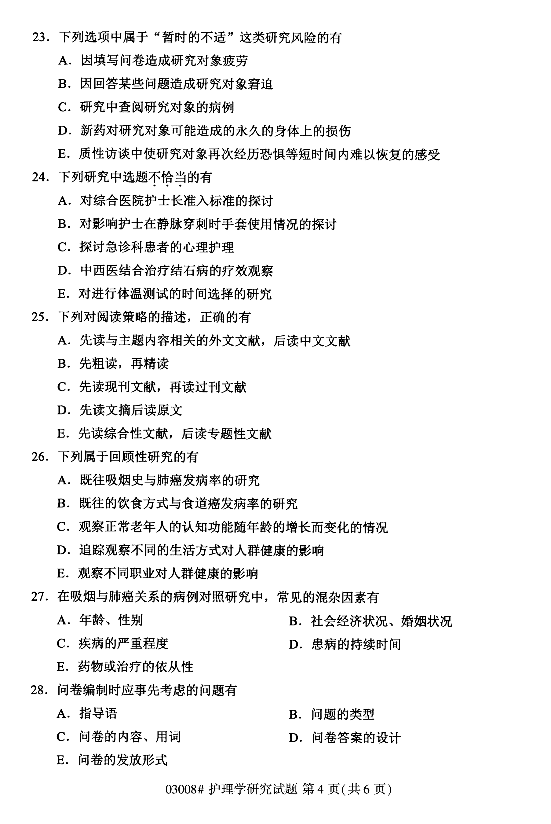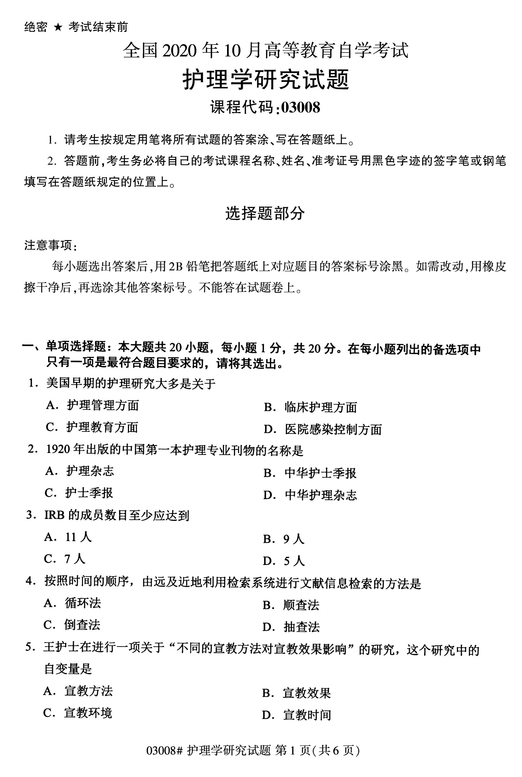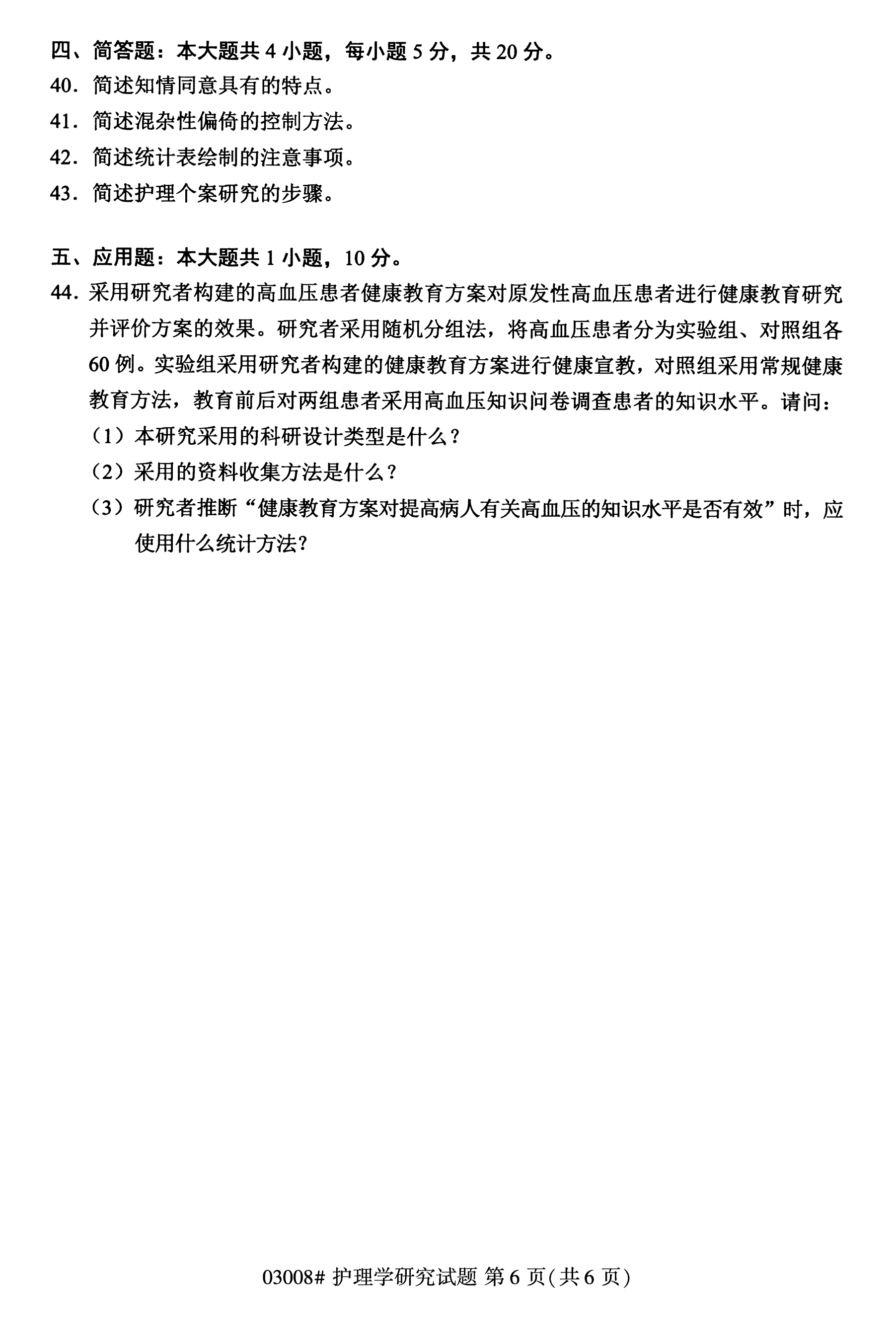 福建成人自考全國卷護(hù)理學(xué)研究(03008)試題