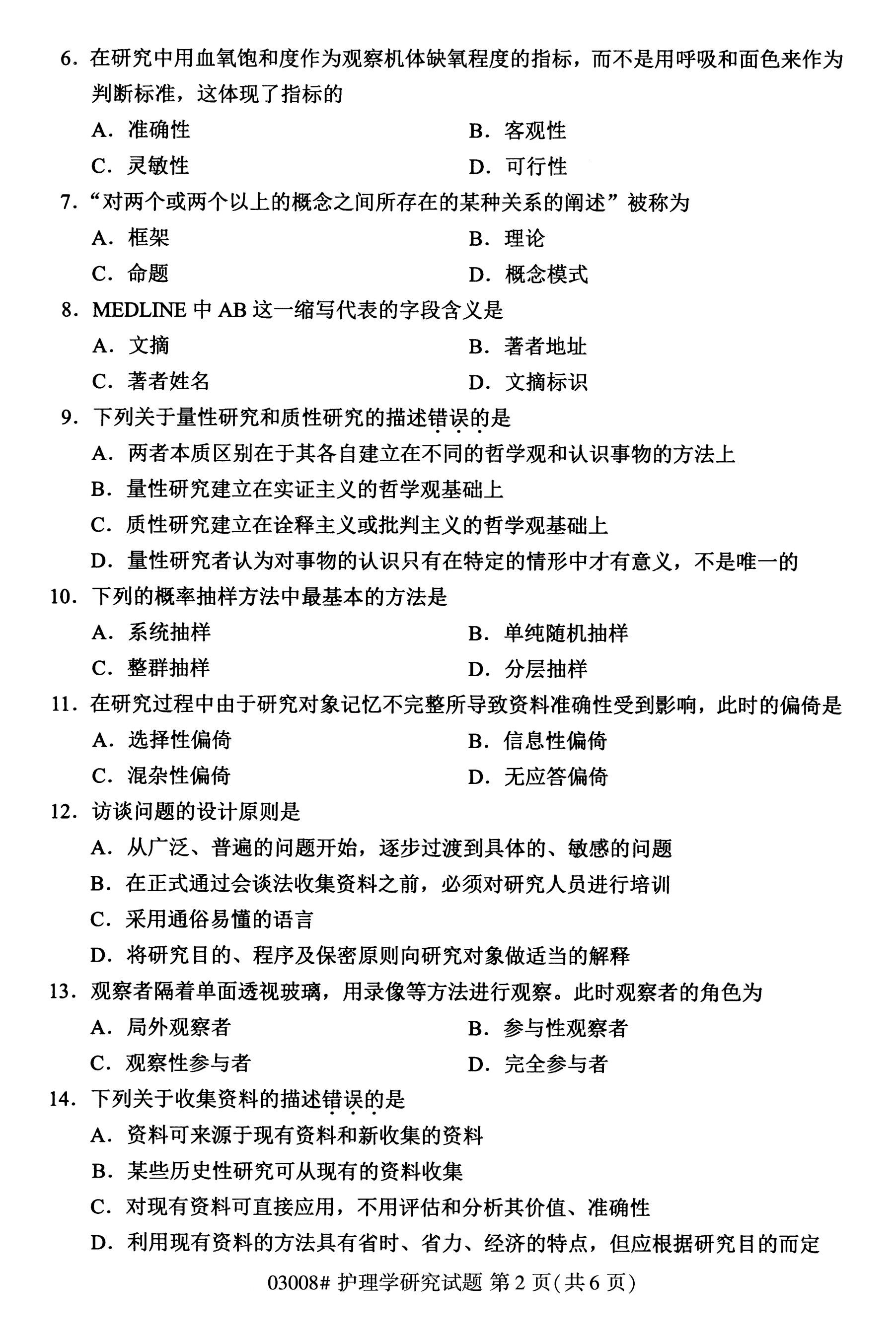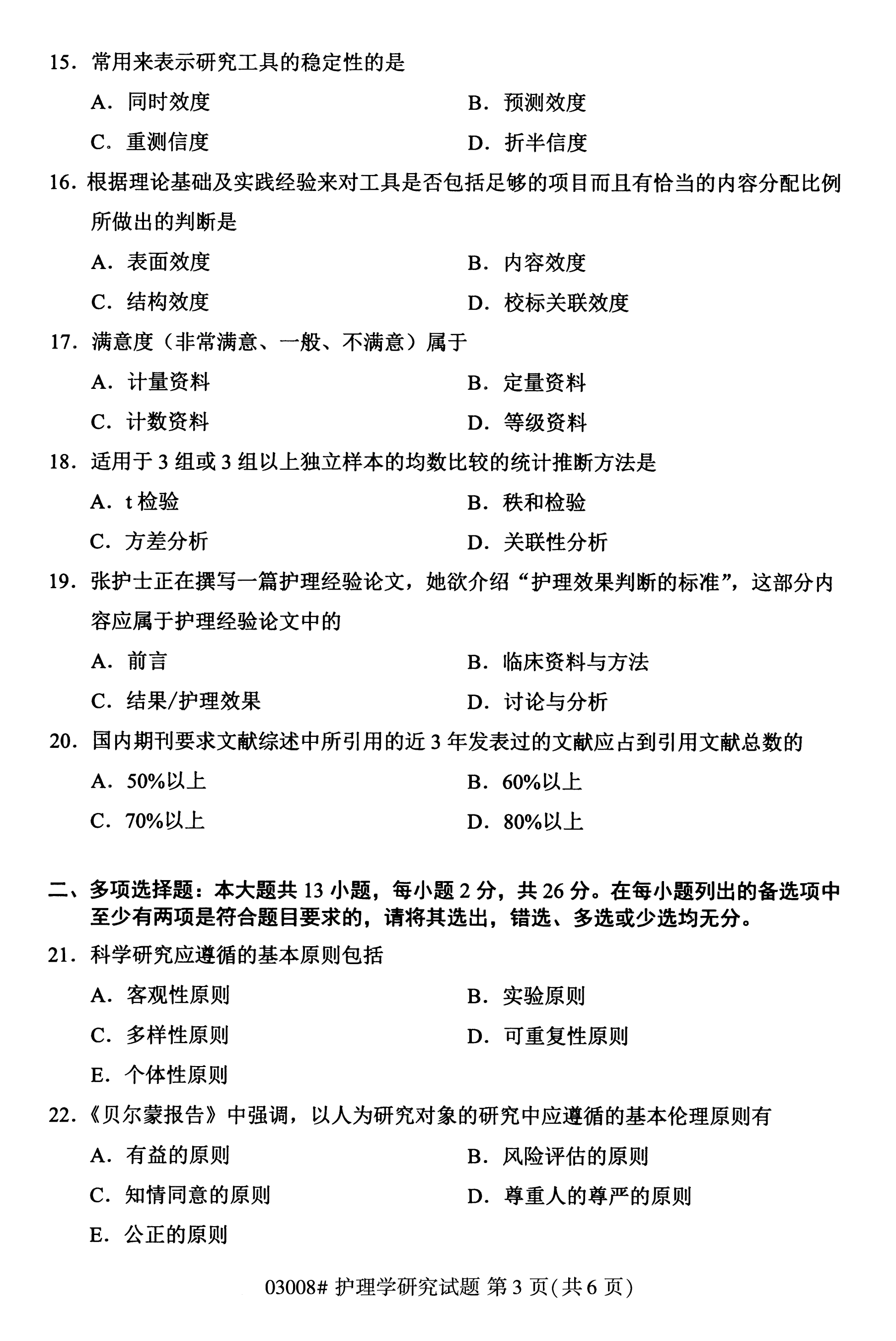 所在位置:福建自考網(wǎng) > 試題題庫 > 自考答案 > 福建成人自考全國卷護(hù)理學(xué)研究(03008)試題
