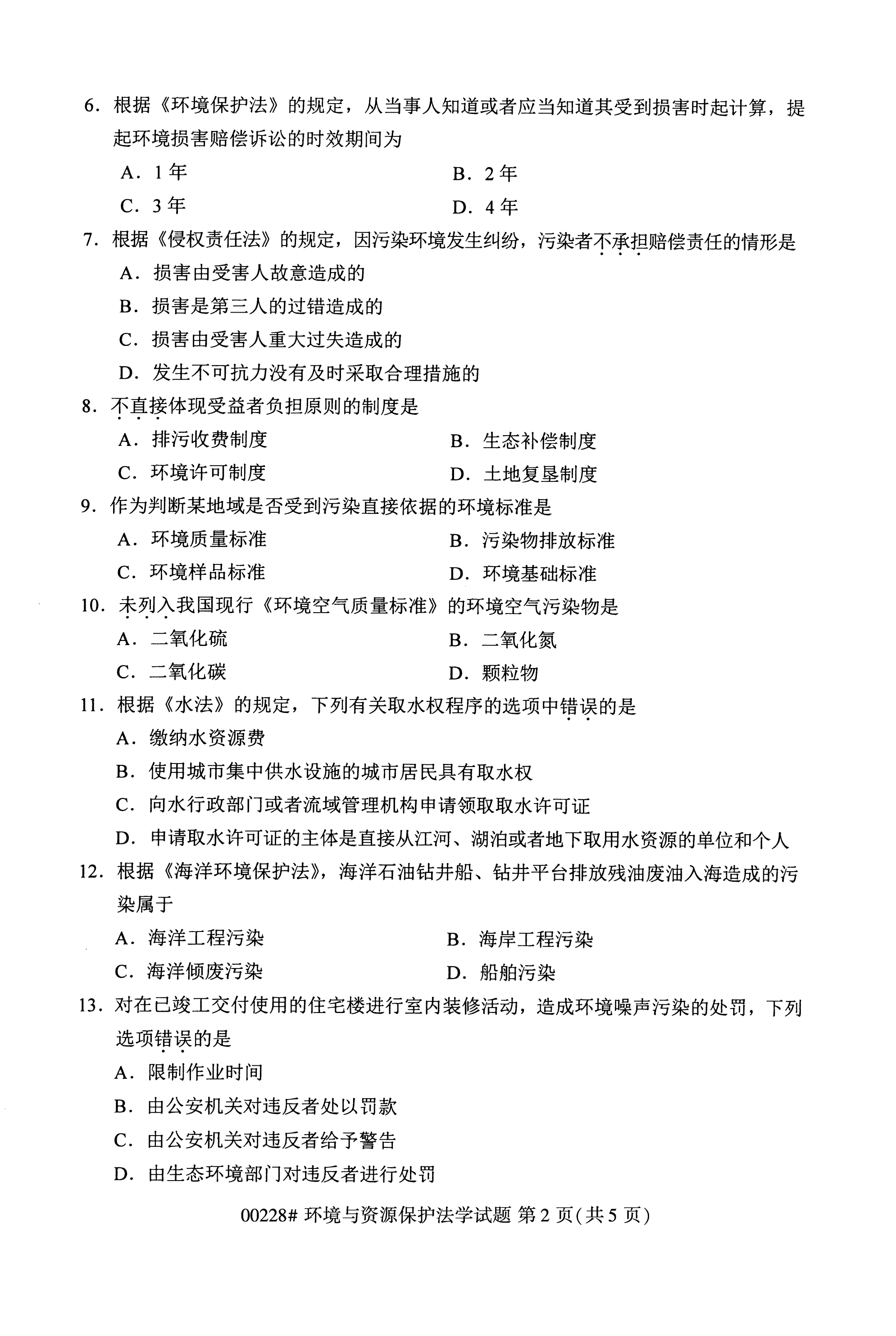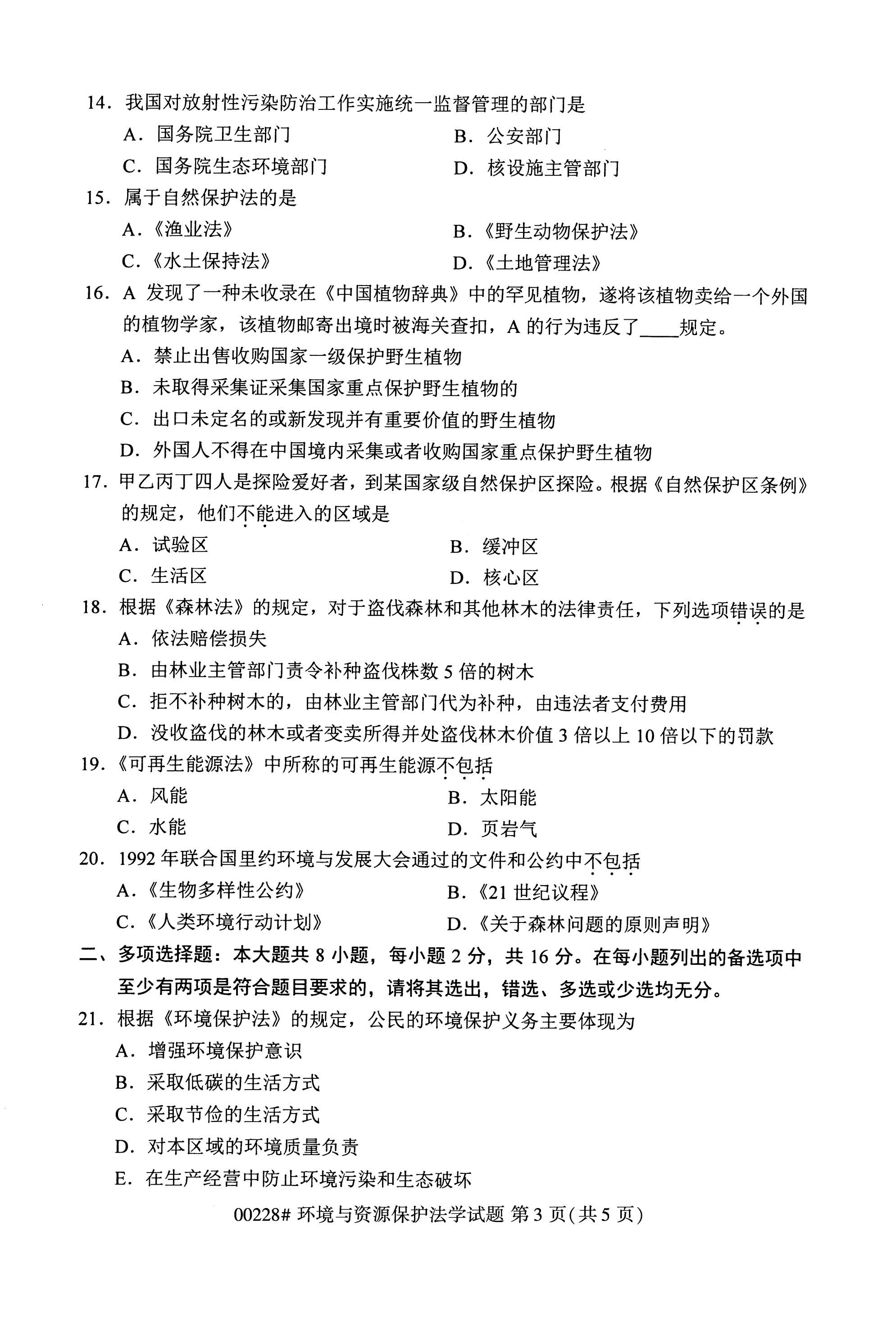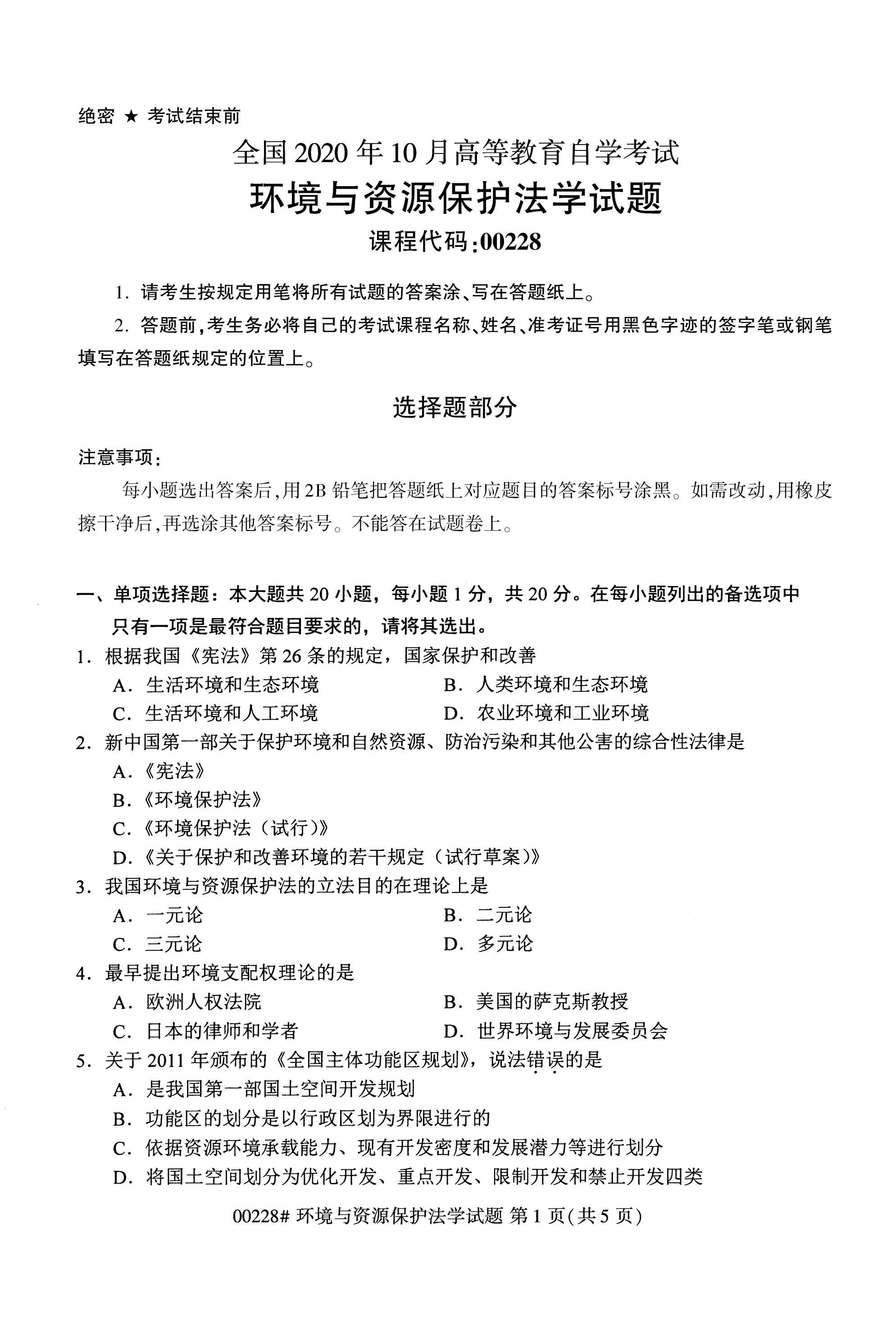 所在位置:福建自考網(wǎng) > 試題題庫(kù) > 自考答案 > 福建成人自考全國(guó)卷環(huán)境與資源保護(hù)法學(xué)(00228)試題